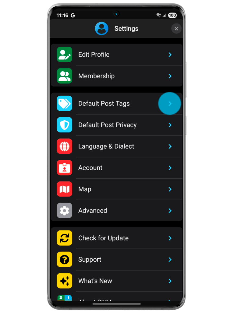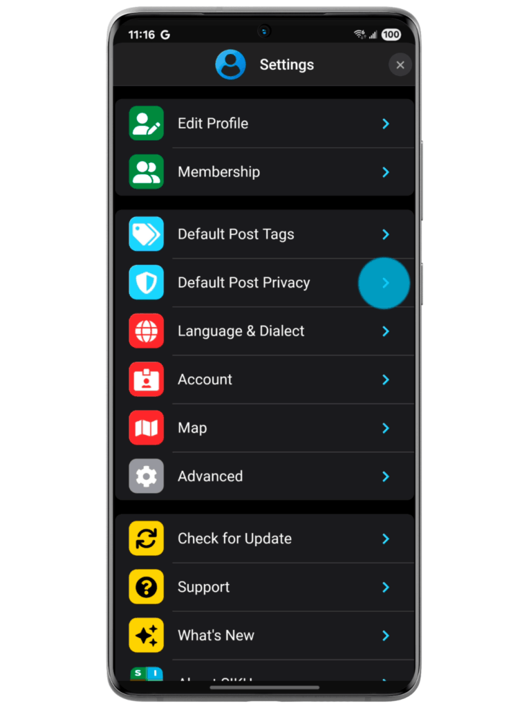 Customize the SIKU app default tags and privacy settings to make posting faster, and choose language preferences for a more personalized experience.